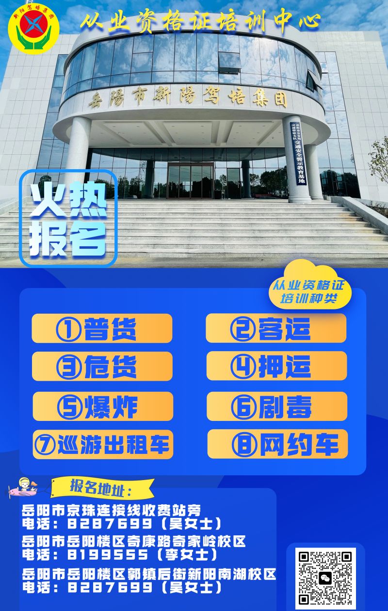 新陽駕培集團(tuán)危、客、貨從業(yè)資格證再繼續(xù)教育培訓(xùn)現(xiàn)在可以線上辦理了!足不出戶,方便快捷!貨運(yùn)從業(yè)資格證初領(lǐng)證辦理,只要來一次學(xué)校就可以辦好!專業(yè)增駕,培訓(xùn)范圍:A1、A2、A3、B1、B2、C1、C2